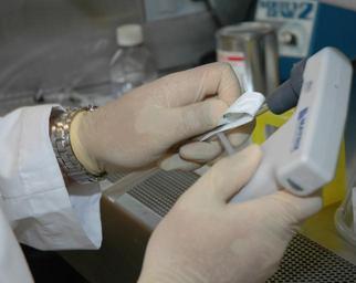 Keywords: Pipetting (1).jpg The gloved hands of a scientist attaching a pipet to a pipet Aid that is used to measure and dispense volumes of liquid from 1-50 milliliters Topics/Categories Science and Technology -- Laboratory Techniques/Equipment Type Color Photo Source National Cancer Institute Diane A Reid Photographer 3870 2005-01-27 Reuse Restrictions None - This image is in the public domain and can be freely reused Please credit the source and/or author listed above Diane A Reid Photographer PD-USGov-HHS-NIH Media from National Cancer Institute Visuals Online Images uploaded by Fæ People using pipettes |