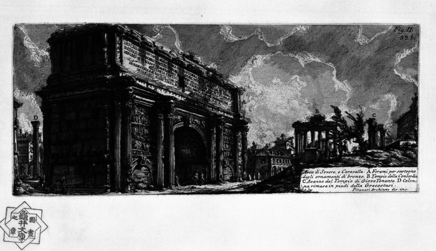 | Keywords: Piranesi-1056.jpg 1 1055 1057 XXXI Arch of Septimius Severus Rome <gallery> File Peracvestigi157504 jpg Dupérac 1575 File Forum Romanum from Capitolium jpg 2007 </gallery> Arch of Septimius Severus Rome in art 1756 Etchings by Giovanni Battista Piranesi Temple of Saturn Rome Temple of Vespasianus Rome 1756 |