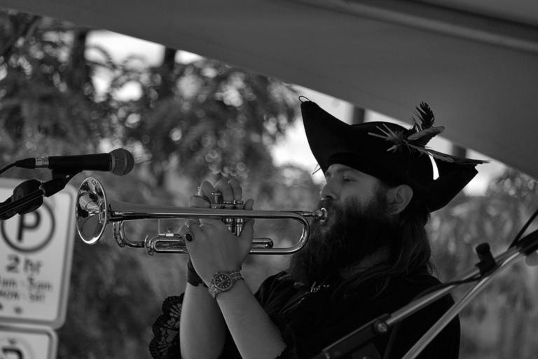 MAKE A MEME View Large Image blackandwhite black white bw monochrome street streetphotography downtown canada britishcolumbia bc okanagan kelowna pirate trumpet musician summer blockparty music man male guy person playing costume hat beard