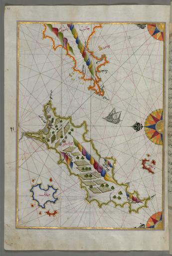 | Keywords: Piri Reis - Map of the Island of Cos Off the Anatolian Coast - Walters W65895A - Full Page.jpg Piri Reis - Map of the Anatolian Coast Facing the Island of Cos - Walters W65893B - Full Page jpg Piri Reis - Map of the Bay of Kerme East of Cos Island - Walters W65897B - Full Page jpg rtl This folio from Walters manuscript W 658 contains a map of the island of Cos Stancho Istanköy off the Anatolian coast in the eastern Aegean Sea late 11th century AH/AD 17th century-early 12th century AH/AD 18th century Ottoman ink and pigments on laid European paper cm 34 24 accession number W 658 95A 79738 Ahmad Afandi date and mode of acquisition unknown see folio 4a Ali Afandi date and mode of acquisiton unknown see folio 4a Sayyid Ali Qapudan date and mode of acquisition unknown see folio 1a Sultan Mahmud Khan date and mode of acquistion unknown waqf seal and followed by a bequest statement now erased and the seal of the inspector of wakfs Mustafá Tahir see folio 4a Henry Walters Baltimore date and mode of acquisition unknown Walters Art Museum Henry Walters Acquired by Henry Walters place of origin Turkey Walters Art Museum license 2D Piri Reis Kitab-ı Bahriye Walters MS 658 095A Media contributed by the Walters Art Museum needs category review Aegean Sea maps Anatolian Coasts by Piri Reis in the Walters Art Museum |