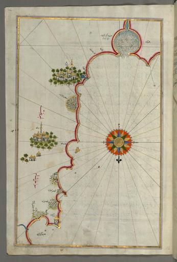 | Keywords: Piri Reis - Map of the "Syrian Coast" and the Cities - Gaza and Ramlah - Walters W658312A - Full Page.jpg This folio from Walters manuscript W 658 contains a map of the Syrian coast and the cities Gaza Ghazzah and Ramlah present-day Gaza strip belonging to the Palestinian Authority late 11th century AH/AD 17th century-early 12th century AH/AD 18th century Ottoman ink and pigments on laid European paper cm 34 24 accession number W 658 312A 79888 Ahmad Afandi date and mode of acquisition unknown see folio 4a Ali Afandi date and mode of acquisiton unknown see folio 4a Sayyid Ali Qapudan date and mode of acquisition unknown see folio 1a Sultan Mahmud Khan date and mode of acquistion unknown waqf seal and followed by a bequest statement now erased and the seal of the inspector of wakfs Mustafá Tahir see folio 4a Henry Walters Baltimore date and mode of acquisition unknown Walters Art Museum Henry Walters Acquired by Henry Walters place of origin Turkey Walters Art Museum license 2D Piri Reis Kitab-ı Bahriye Walters MS 658 Media contributed by the Walters Art Museum needs category review |