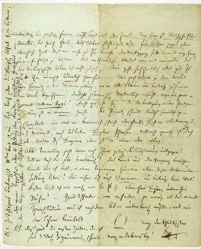 Keywords: Pismo Jerneja Kopitarja Žigi Zoisu; Dunaj, 13. 6. 1812 (4).jpg ob nedeljah in drugih praznikih z družino odpravi na deželo Njegov delodajalec je gospodarski direktor pri grofu Frießu Tudi Weber je videti dobro Za Kollerja pa je bil skrajni čas da je dobil več dela saj je brezdelje že začelo kazati svoj škodljivi vpliv Matematiko je opravil z eminentia spričevala iz naravoslovja pa nisem videl Nekoč sem ga očetovsko posvaril in upam da bo sedaj vse dobro Kaj pravi Vodnik na <u>Primičev</u> članek v Dunajskem časopisu kjer ta vse Slovane naproša da s prispevki sodelujejo pri nameravani izdaji Nemško-slovenskega slovarja Ergo hic praeveniet <u>rectorem lycei </u> Prav se mu godi Napoved v graškem časopisu je po <u>mojem</u> okusu Primic piše v nemščini precej <u>všečno </u> le ko govori ali piše po krajnsko hlasta po neumnih in <u>neprimernih</u> puhlicah kot Marko I in Marko II Morda mi bo le uspelo da ga tega odvadim Med Štajerci pa je vedno <u> abbas </u> Oče Tammerburg še vedno pričakuje Vaš ugodni odgovor Ali naj teh 60 florintov vendarle porabi O tem bi nam lahko poročal Vincenc Ko bi le lahko kmalu v kakšnem udobnem stanovanju užival vsa ta postranska zadovoljstva Potem bi tudi <u>Wernerja</u> prijel za besedo zaradi prispevkov Dal bi si narediti omare kot jih ima Vaša milost; zgoraj za <u>knjige </u> spodaj za <u>minerale </u> Quod differtur non aufertur Tako malo kot študij orientalskih jezikov ki sem ga moral prekiniti zaradi bolehnega učitelja Večni dolžnik Vaše milosti Kopitar l r P S To so prve vrstice ki jih pišem po treh tednih ciganskega življenja Jutri Dobrovskemu P S 2 V drugem zvezku Schlözerjeve korespondence je latinsko pismo <u>Büttnerju</u> o slovanskih pisavah itd v katerem daje <u>nevede</u> prednost moji hipotezi o delitvi Hrvatov Baronu Shishki iz Zagreba sem na priporočilo Bonazze predstavil dvorno knjižnico itd an Sonntagen u sonstigen Ferien aufs Land mit der Familie Sein Herr ist Wirtschaftsdirector bei Graf Fries Auch Weber sieht gut aus Für Koller wars aber eben hohe Zeit daß er mehr zu thun kriegte Der Müssiggang hatte bereits angefangen seinen Einfluss zu äußern Das mathematische Attestat war mit eminentia Das der Naturgeschichte bekamm ich nicht zu sehen Nun geht hoffentliech alles gut Ich hatte ihm einmahl väterlich gemahnt Was sagt Vodnik zu dem Artikel von <u>Primitz</u> in der Wienerzeitung wo er alle Slaven um Beiträge zu seinem im Werke begrieffenen <u>Deutsch Slovenischen Wörterbuch</u> ersucht Ergo hic praeveniet <u>rectorem lycei </u> Recht geschieht ihm Die Ankündigung in der Gratzerzeitung ist in <u>meinem</u> Geiste Der Primitz schreibt Deutsh ziemlich <u>geschmackvoll;</u> nur wenn er krainerisch spricht oder schreibt hascht er à la Marcus I et Marcus II nach talketen <u>inepten</u> Phrasen Vielleicht gewöhn ich s ihm doch ab Unter den Steyrern aber ist er immer der <u>abbas</u> Abbé Tammerburg sieht immer noch Ihrer gütigen Rückäußerung entgegen Soll er doch die f 60 verbrauchen Das könnte uns der Vinzenz berichten Könnte nur ich bald in einem bequemern Quartier allen diesen Nebennunterhaltungen leben Dann nähme ich auch <u>Wernern</u> um Beiträge beim Wort Kästen liesse ich mir machen wie bei E G oben für <u>Bücher </u> unten für <u>Stufen </u> Quod differtur non aufertur so wenig als das orient Sprachstudium was ich nach dem Abrer Unterbrechen mußte weil mir der Lehrer kränkelt E G ewig dankschuldigster K m p PS Dies sind die ersten Zeilen die ich seit 3 Wochen Zigeunerns schreibe Morgen an Dobrowsky PS 2 In Schlözers Briefwehsel II<sup>ter</sup> Band ist ein lat Brief über die Slavischen Alfab Etc an <u>Büttner </u> der meine Hypothese über die Theilung der Kroaten <u>unwissend</u> favorisirt Dem von Bonaza empfohlenen B <sup>n</sup> Shishka von Agram habe die Hofbibliothek aufgeführt etc http //nl ijs si/e-zrc/zois/html/MP40 html 1812-06-13 creator Jernej Kopitar PD-old-100 <gallery> File Pismo Jerneja Kopitarja Žigi Zoisu; Dunaj 13 6 1812 1 jpg part 1 File Pismo Jerneja Kopitarja Žigi Zoisu; Dunaj 13 6 1812 2 jpg part 2 File Pismo Jerneja Kopitarja Žigi Zoisu; Dunaj 13 6 1812 3 jpg part 3 </gallery> 1812 letters Letters by Jernej Kopitar Letters to Sigmund Zois |