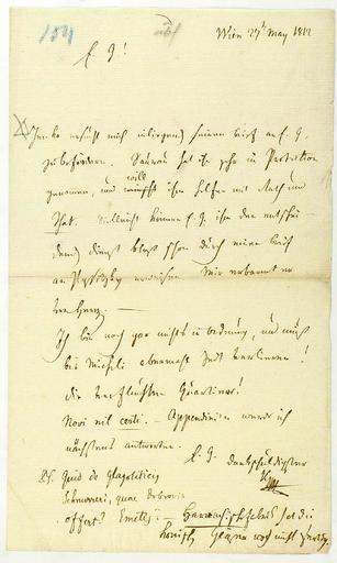 Keywords: Pismo Jerneja Kopitarja Žigi Zoisu; Dunaj, 27. 5. 1812.jpg Dunaj 27 maja 1812 Vaša milost Jenko me je zaprosil da Vaši milosti pod nujno odpošljem njegovo pismo Saurau ga zelo podpira ter bi mu rad pomagal z nasveti in dejanji Morda bi mu Vaša milost lahko izkazala odločilno pomoč že zgolj s pismom Pasetzkemu Meni se iz srca smili Jaz si še vedno nisem vsega uredil in bom do Mihaelovega ponovno izgubljal čas Naj vrag vzame ta stanovanja Novi nil <u>certi</u> Appendiniju bom odgovoril prihodnjič Vaše milosti dolžnik Kopitar l r P S Quid de glagoliticis Schnurreri quae Dobrovio offert Emetis Harrachova tovarna še ni izdelala stožčastih stekel Wien 27<sup>ten</sup> May 1812 E G Jenko ersucht mich eiligend seinen Brief auf E G zu befördern Saurau hat ihn sehr in Protection genommen und will ihm helfen mit Rath und That Vielleicht können E G ihm den entscheidenden Dienst bloß schon durch euren Brief an Pasetzky erweisen Mir erbarmt er von Hertzen Ich bin noch gar nichts in Ordnung und muß bis Micheli abermahl Zeit verlieren Die verfluchten Quartiere Novi nil <u>certi </u> Appendini n werde ich nächstens antworten E G dankschuldigster K m p PS Quid de glagoliticis Schnurreri quae Dobrovio offert Emetis Harrachische Fabrik hat die konischen Gläser noch nicht fertig http //nl ijs si/e-zrc/zois/html/MP39 html 1812-05-27 creator Jernej Kopitar PD-old-100 1812 letters Letters by Jernej Kopitar Letters to Sigmund Zois |