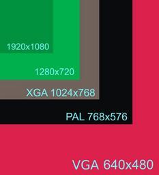 Keywords: Pixel.svg Wielkości piksela obrazu w zależności od rozdzielczości przy tej samej szerokości matrycy The sizes of a pixel at different resolutions The size of the screen area remains the same own 2008 Akomor1 Resolution charts