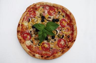 Keywords: pizza basil olives meal