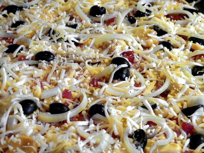 Keywords: pizza eat food pizza topping delicious cheese olives onion snack