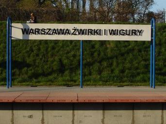 Keywords: PKP Warszawa Żwirki i Wigury tablica.jpg pl tablica z nazwą stacji own MatiOmlet 2009-04-21 Warszawa Żwirki i Wigury railway station Train station signs in Warsaw