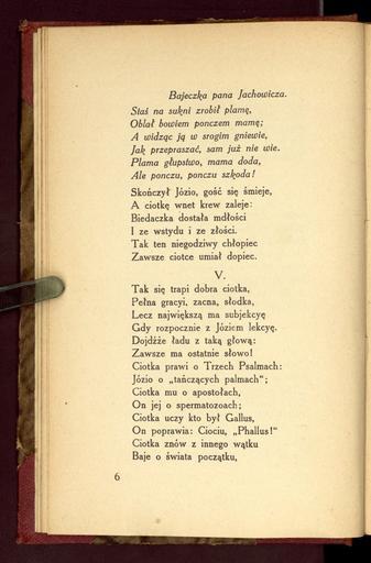 Keywords: PL Tadeusz Boy-Żeleński-Słówka 014.jpg Słówka zbiór wierszy i piosenek by w Tadeusz Boy-Żeleński 1874-1941 a Polish writer and translator of French literature Słówka zbiór wierszy i piosenek autorstwa w Tadeusz Boy-Żeleński Tadeusza Boya-Żeleńskiego pl polskiego pisarza i tłumacza literatury francuskiej http //www polona pl/dlibra/docmetadata id 8263 Cyfrowa Biblioteka Narodowa Polona Creator Tadeusz Boy-Żeleński Słówka zbiór wierszy i piosenek Series title Księgarnia Polska B Połonieckiego; E Wende Drukarnia Narodowa w Krakowie 1913 Lviv - Warsaw pl PD-old Słówka Tadeusz Boy-Żeleński |