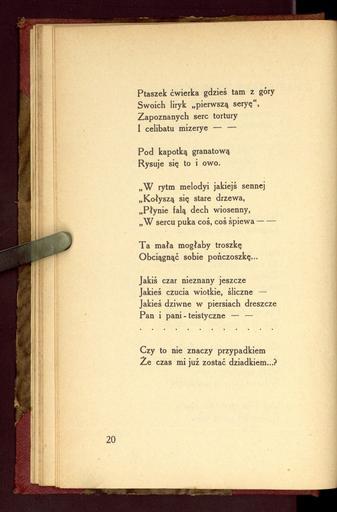Keywords: PL Tadeusz Boy-Żeleński-Słówka 028.jpg Słówka zbiór wierszy i piosenek by w Tadeusz Boy-Żeleński 1874-1941 a Polish writer and translator of French literature Słówka zbiór wierszy i piosenek autorstwa w Tadeusz Boy-Żeleński Tadeusza Boya-Żeleńskiego pl polskiego pisarza i tłumacza literatury francuskiej http //www polona pl/dlibra/docmetadata id 8263 Cyfrowa Biblioteka Narodowa Polona Creator Tadeusz Boy-Żeleński Słówka zbiór wierszy i piosenek Series title Księgarnia Polska B Połonieckiego; E Wende Drukarnia Narodowa w Krakowie 1913 Lviv - Warsaw pl PD-old Słówka Tadeusz Boy-Żeleński |