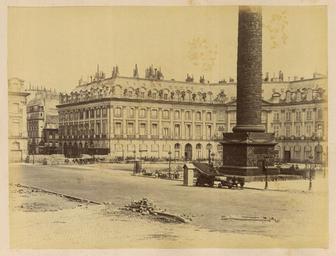 Keywords: Place Vendôme and the Barricade in the Rue de la Paix WDL1270.png Artwork ru Б аквейе Б уно 1823 1875 гг fr Braquehais Bruno 1823-1875 en Braquehais Bruno 1823-1875 zh 布鲁诺·布拉奇海 ,1823-1875 年 pt Braquehais Bruno 1823-1875 ar براكهيه برونو، 1823-1875 es Braquehais Bruno 1823-1875 ru Вандомская площадь и ба икада на Рю де ла Пэ fr Place Vendôme et barricade de la rue de la Paix en Place Vendôme and the Barricade in the Rue de la Paix zh 旺多姆广 及和平街的防御工事 pt Praça Vendôme e a barricada em Rue de la Paix ar ميدان فندوم ومتراس شارع لابيه ru П ичиной ф анко-п усской войны стал ост нап яженности в отношениях между Ф анцией и П уссией в 1860-х гг Ф анция п и импе ато е аполеоне III была полна ешимости п ове ить астущую силу П уссии и отомстить за то что она ассмат ивала как яд дипломатических унижений П уссия п и канцле е Отто фон Бисма ке считала что война ге манских госуда ств п отив Ф анции под уководством П уссии станет ешающим шагом к созданию единой Ге манской импе ии Конфликт начался 19 июля 1870 г когда Ф анция объявила войну Ф анцузская а мия оказалась ужасно неподготовленной и поте пела сок ушительное по ажение в битве п и Седане отк ыв до огу на Па иж К 19 сентяб я немцкие войска полностью ок ужили го од и начали осаду кото ая п одлилась более четы ех месяцев От езанные от поставок п одовольствия из сельской местности па ижане пытались выжить питаясь собаками кошками и даже животными из па ижского зоопа ка Де евья на Елисейских полях и в па ках были вы ублены и использованы в качестве топлива 5 янва я немецкие войска начали бомба ди овку го ода кото ая п одолжалась по несколько часов каждую ночь в течение 23 суток а ок естности Па ижа было сб ошено около 12 000 сна ядов кото ые убили около 400 человек Па иж сдался 28 янва я в сущности положив конец войне За по ажением ф анцузов последовало на одное восстание и установление в а те 1871г Па ижской коммуны еволюционного п авительства сфо ми ованного в соответствии с ана хистскими и социалистическими п инципами Коммуна была жестоко подавлена в мае 1871 г ф анцузскими войсками п авительства Адольфа Тье а Во в емя неп одолжительного конт оля над Па ижем коммуна ы аз ушали импе ато скую колонну на Вандомской площади Подавление коммуны п ивело к дальнейшим значительным аз ушениям в го оде когда коммуна ы подожгли дво ец Тюиль и Лув и д угие здания К оме того многие здания пост адали или были аз ушены во в емя отчаянной пе ест елки между коммуна ами и конт еволюционными силами Siege de Paris 1870 1871 Осада Па ижа 1870 1871 гг п едставляет собой альбом из 110 фотог афий сделанных Огюстом Б уно Б аквейе 1823 1875 гг ф анцузским фотог афом и п ог ессивным фотожу налистом документи овавшим осаду и последствия бомба ди овок а также аз ушения п оизошедшие во в емя Па ижской коммуны <br>Ба икады; Вандомская колонна Па иж Ф анция ; Колонны; Ф анко-п усская война 1870 1871 гг ; Память ми а; Памятники и мемо иалы; Вандомская площадь Па иж Ф анция ; Площади; Рю де ла Пэ Па иж Ф анция ; Уще б нанесенный войной fr La guerre franco-allemande fut provoquée par l escalade des tensions entre la France et la Prusse dans les années 1860 La France sous l empereur Napoléon III était déterminée à contenir la croissance de la puissance prussienne et à venger ce qui était considéré comme une série d humiliations diplomatiques La Prusse sous le chancelier Otto von Bismarck considérait qu une guerre dirigée par la Prusse et menée par les États allemands contre la France serait un acte décisif menant à la création d un empire allemand unifié Le conflit débuta le 19 juillet 1870 jour où la France déclara la guerre L armée française s avéra terriblement mal préparée et subit une défaite désastreuse lors de la bataille de Sedan laissant la voie libre vers Paris Le 19 septembre les Allemands encerclèrent complètement la ville et commencèrent un siège qui allait durer plus de quatre mois Coupés du ravitaillement provenant de la campagne les