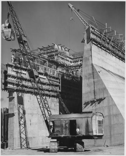 | Keywords: Placing concrete in the cut-off wall on the axis of the dam on the west side of the spillway structure - NARA - 295311.jpg Scope and content Placing concrete in the cut-off wall on the axis of the dam on the west side of the spillway structure Note the peculiar shape of the bucket with hood over the top use in transporting concrete by crane to the structure When the bucket is placed on the ground it rotates on its own track to bring the hood into position for receiving concrete as it is discharged from transit-mix type trucks ;Project Los Angeles River Improvement ;Location Hansen Dam across Tujunga Wash ;Funds Regular funds Work prosecuted under Contract No W-509-Eng 689 General notes 295311 Local identifier Department of Defense Department of the Army Office of the Chief of Engineers Los Angeles District 09/18/1947 - 06/14/1979 NARA's Pacific Region Riverside NRHAR 23123 Cajalco Rd Perris CA 92570 Record group Record Group 77 Records of the Office of the Chief of Engineers 1789 - 1999 Record group ARC 406 General Administrative Files compiled 1935 - 1952 Series ARC 295295 File unit 800 912 Photos Volume 1 1936 - 1940 File unit ARC 295305 Variant control numbers NAIL Control Number NRHL-77-LAGA1-800PHOTOS1-GOF06<br /> Other Identifier General Admin Files 1935-1950 Box 44 Files 800 912 Photos V1 2 Other versions <gallery> File Placing_concrete_in_the_cut-off_wall_on_the_axis_of_the_dam_on_the_west_side_of_the_spillway_structure_-_NARA_-_295311 tif tif File Placing_concrete_in_the_cut-off_wall_on_the_axis_of_the_dam_on_the_west_side_of_the_spillway_structure_-_NARA_-_295311 jpg jpg </gallery> NARA-cooperation PD-USGov Tujunga Creek w Hansen Dam Hanson Los Angeles in the 1930s Hanson Black and white photographs of Los Angeles Hanson Black and white photographs of structures Hanson NARA images of Los Angeles County California Hanson |