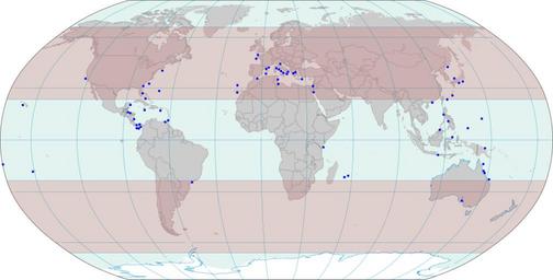 | Keywords: Placozoa.svg en Distribution of Placozoa Kingdom Animalia Phylum Placozoa based on Eitel 2013 doi 10 1371/journal pone 0057131 2013-04-01 World map with the torrid zone highlighted Derived via Inkscape from Image World map pol 2005 v02 svg which is itself public domain CIA World Factbook other versions PD-USGov Placozoa Parazoa |