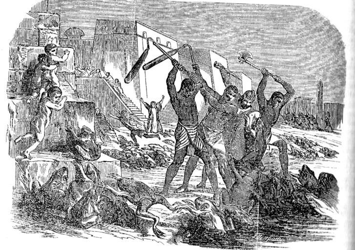 | Keywords: Plague of Frogs.jpg Second plague of Egypt Frogs Picture from popular bible encyclopedia of archimandrite Nikiphor 1891 year ru Вто ая казнь Египетская - жабы Иллюст ация из иллюст и ованной библейской энциклопедии а химанд ита икифо а 1891 год popular bible encyclopedia of archimandrite Nikiphor 1891 year G N Petrov ru Г Пет ов 1891 Second Plague of Egypt Frogs PD-old-auto |