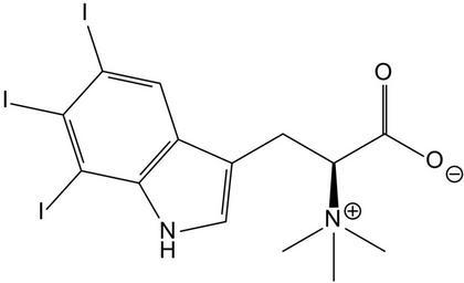 Keywords: Plakohypaphorine E.svg diagram of the alkaloid Plakohypaphorine E own 2007-05-03 Eloil Indole alkaloids