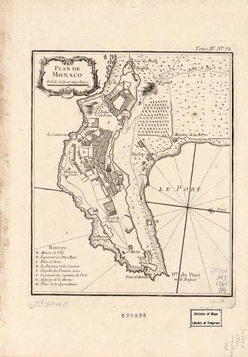 Keywords: Plan de Monaco WDL665.png Artwork ru Беллин Жак икола 1703-1772 fr Bellin Jacques-Nicolas 1703-1772 en Bellin Jacques Nicolas 1703-1772 zh 宁 雅克·尼古拉 1703-1772 pt Bellin Jacques Nicolas 1703-1772 ar بيلن جاك نيكولاس 1703-1772 es Bellin Jacques Nicolas 1703-1772 ru Ка та онако fr Plan de Monaco en Plan de Monaco zh 摩纳哥平 图 pt Mapa de Mónaco ar خريطة موناكو ru Жак Беллин 1703-1772 был составителем многочисленных ка т Он служил в о ском уп авлении Ф анции В 1764 году он опубликовал <i> Le Petit Atlas Maritime </i> алый мо ской атлас в пяти томах соде жащий 581 ка ту Данная ка та входит в четве тый том атласа Ка та о иенти ована так что севе находится в левой нижней части а ка те изоб ажен го од и по т онако Княжество онако является одной из самых небольших ст ан ми а Итальянский го од-госуда ство Генуя получила конт оль над те ито ией онако в начале XII века а пе вая к епость была пост оена в 1215 году В 1308 году Генуя пе едала п аво уп авления го одом выдающейся генуэзской династии Г имальди за кото ой это п аво сох анялось с тех самых по за исключением неп одолжительного пе иода Ф анцузской еволюции и эпохи п авления аполеона fr Jacques Bellin 1703-1772 était un cartographe prolifique attaché au ministère de la Marine française En 1764 il publia <i>Le Petit Atlas Maritime</i> ouvrage en cinq volumes contenant 581 cartes Cette carte est extraite du quatrième volume de l'atlas Orientée avec le nord en bas à droite elle montre la ville et le port de Monaco La Principauté de Monaco est l'un des plus petits pays au monde La cité état italienne de Gênes prit le contrôle de la région autour de Monaco en 1100 et y construisit le premier fort en 1215 En 1308 Gênes octroyait le droit de gouverner la principauté à une grande famille génoise les Grimaldi Depuis à l'exception d'une brève période au cours de la Révolution française et de l'époque napoléonienne la famille Grimaldi règne sur le rocher en Jacques Bellin 1703-72 was a prolific cartographer attached to the French Marine Office In 1764 he published <i>Le Petit Atlas Maritime</i> Small maritime atlas a work in five volumes containing 581 maps This map is from volume four of the atlas Oriented with north at the lower right it shows the city and port of Monaco The Principality of Monaco is one of the world s smallest countries The Italian city-state of Genoa gained control of the region around Monaco in the 1100s and built the first fort there in 1215 In 1308 Genoa granted the right to rule the city to a prominent Genoese family the Grimaldi which with the exception of a brief period during the French Revolution and the Napoleonic eras has done so ever since zh 雅克· 林(1703-72 年)是隶属于法国海洋 的 位多产的 图绘制师 1764 年,他出版了 <i> Le Petit Atlas Maritime </i> (海洋小 图册),该 图册共五卷,包括 581 幅 图 这幅 图出自该 图册的第四卷 该 图右下角指示的方向为北方,描绘了摩纳哥城市和港口 摩纳哥公国是世界上 小的国家之 12 世纪 00 年代,意大利的热那亚城邦控制了摩纳哥周边 区,1215 年 此建立了首座要塞 1308 年,热那亚将该城市的统治 授予 出的格里马尔迪热那亚家族,除了法国大 命和拿破仑时代 间的短暂时 外,从那之后摩纳哥 直都由该家族 统治 pt Jacques Bellin 1703-72 foi um prolífico cartógrafo vinculado ao Gabinete da Marinha Francesa Em 1764 ele publicou <i>Le Petit Atlas Maritime</i> Pequeno atlas marítimo uma obra em cinco volumes contendo 581 mapas Este mapa é do volume quatro do atlas Orientado com o norte na parte inferior direita ele mostra a cidade e o porto do Mônaco O Principado de Mônaco é um dos menores países do mundo A cidade-estado Italiana de Gênova ganhou o controle da região em torno de Mônaco na década de 1100 e construiu ali o primeiro forte em 1215 Em 1308 Gênova concedeu o direito de governar a cidade a uma proeminente família Genovesa os Grimaldi que com a exceção de um breve período durante a Revolução Francesa e as eras Napoleônicas governou desde então ar كان جاك بيلين 1703-72 رسام خرائط وفير الإنتاج وتابعا إلى المكتب البحري الفرنسي في 1764 نشر <i>الأطلس البحري الصغير،</i> وهو عمل في خمسة مجلدات تحتوي على 581 خريطة هذه الخريطة مأخوذة من المجلد الرابع من الأطلس ويبين الاتجاه الشمالي في اليمين الأسفل من الخريطة، التي تظهر مدينة وميناء موناكو إن إمارة موناكو إحدى أصغر البلدان في العالم حازت دولة مدينة جنوا على سيطرنها للمنطقة المحيطة بموناكو في السنوات الأولى من القرن الثاني عشر وشيدت أملا حصن هناك في 1215 في 1308 منحت جنوا حق حكم المدينة إلى العائلة الجنوية البارزة غريمالدي، التي حكمت المدينة منذ ذلك الوقت باستثناء فترات قصيرة خلال الثورة الفرنسية والحقبات النابليونية es Jacques Bellin 1703-1772 fue un prolífico cartógrafo asignado a la Oficina de la Marina Francesa En 1764 publicó <i>Le Petit 