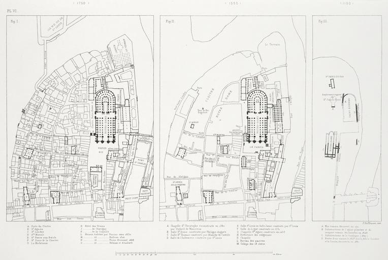 | Keywords: Plan du quartier de Notre-Dame 1150, 1550, 1750.jpg Artwork Aerial plans of the area around Notre-Dame Cathedral Three maps in order from left to right show the area in 1750 1550 and 1150 On the overlay the same area is shown in 1881 1875-1882 lithograph 24 x 30 cm Institution Brown University Library object history exhibition history credit line Published in Theodor Josef Hubert Hoffbauer Paris à travers les âges Paris Firmin-Didot et cie 1885 accession number 1145902002200059 PD-old Lithographs of Paris Images of Paris from the Brown University Library Floor plans of Paris Paris à travers les âges Plans of Cathédrale Notre-Dame de Paris Palais épiscopal de Paris Maps of Île de la Cité Paris in the 12th century Paris in the 16th century Paris in the 1750s Notre-Dame de Paris on the maps Notre-Dame de Paris in the 1880s |