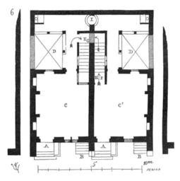| Keywords: Plan.maison.XIIe.siecle.Montreale.png Drawings by Eugène Viollet-le-Duc n voit encore dans la petite ville de Montréale Yonne quelques maisons construites d'après ce système et une entre autres proche de la porte du côté d'Avallon qui est assez bien conservée La fig 6 en reproduit le plan Cette maison double paraît remonter aux premières années du XIII<sup>e</sup> siècle En A sont les entrées avec perrons et bancs de pierre; en B les descentes de caves donnant suivant l'habitude bourguignonne sur la voie publique; en CC' les salles du rez-de-chaussée En D sont deux petites cours entourées d'appentis en bois ne s'élevant que d'un rez-de-chaussée Dictionnaire raisonné de l'architecture française du XI<sup>e</sup> au XI<sup>e</sup> siècle ~ 1856 Eugène Viollet le Duc Viollet-le-Duc House Viollet-le-Duc Houses in Yonne |