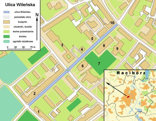 | Keywords: Plan ulicy WileÅ„skiej w Raciborzu.png pl Plan ukazujÄ…cy ulicÄ™ WileÅ„skÄ… w Raciborzu Ulica WileÅ„ska zaznaczona jest kolorem niebieskim ObjaÅ›nienia 1 SÅ‚oneczko ; 2 Kamienice przy ulicy WileÅ„skiej 13 “21; 3 PaÅ„stwowa SzkoÅ‚a Muzyczna I stopnia; 4 UrzÄ…d stanu cywilnego; 5 Cech RzemiosÅ‚ Różnych; 6 Zespół Szkół Zawodowych; 7 Orlik 2012; 8 Zespół Szkół Budowlanych i RzemiosÅ‚ Różnych; 9 Sala gimnastyczna przy Zespole Szkół Budowlanych i RzemiosÅ‚ Różnych; 10 Kamienica przy ulicy Wojska Polskiego 15 own plan sporzÄ…dzony na podstawie zdjęć satelitarnych dostÄ™pnych na http //maps geoportal gov pl/webclient/ Geoportalu Olos88 Cc-zero Maps of Racibórz WileÅ„ska Street Racibórz |