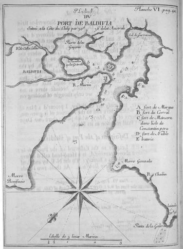 Keywords: Planche VI.jpg Planche VI A voyage to the south-sea and along the coasts of Chili and Peru in the years 1712 1713 and 1714 by Monsieur Frezier exemplaire de la bibliothèque patrimoniale de Gray 70100 France 1717 Amédée Frézier scan Jeffdelonge <span class signature-talk >talk</span> PD-old-100 Frézier's travel 06 Valdivia |