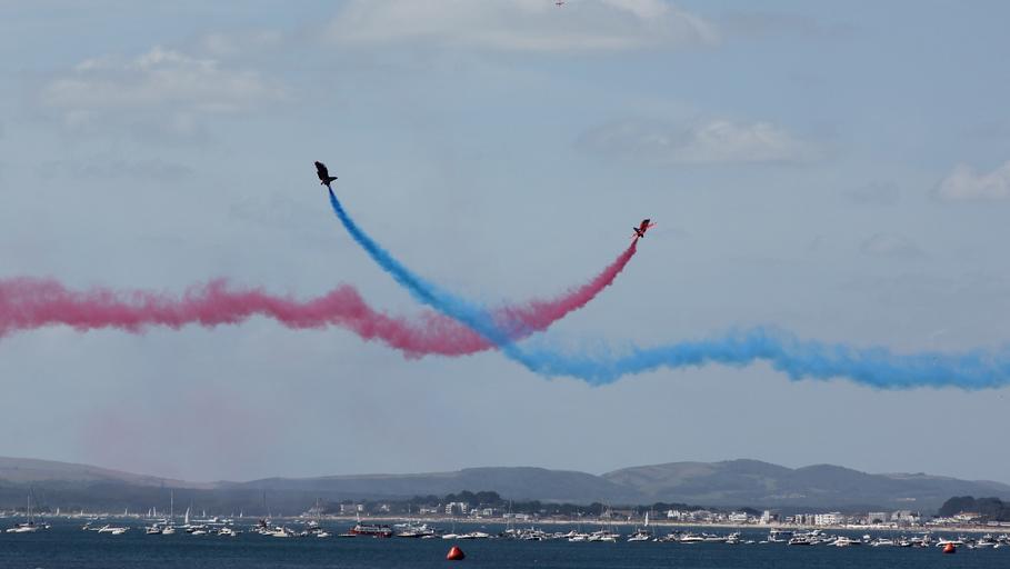 Keywords: planes red arrows display show entertainment aeroplane vehicle aviation flight airplane smoke airshow flying formation aircraft stunt aerial teamwork performance