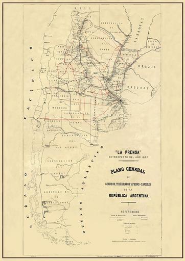| View Original: | Plano general de correos, telégrafos y ferrocarriles de la República Argentina 1887.jpg (945x1337) | |||