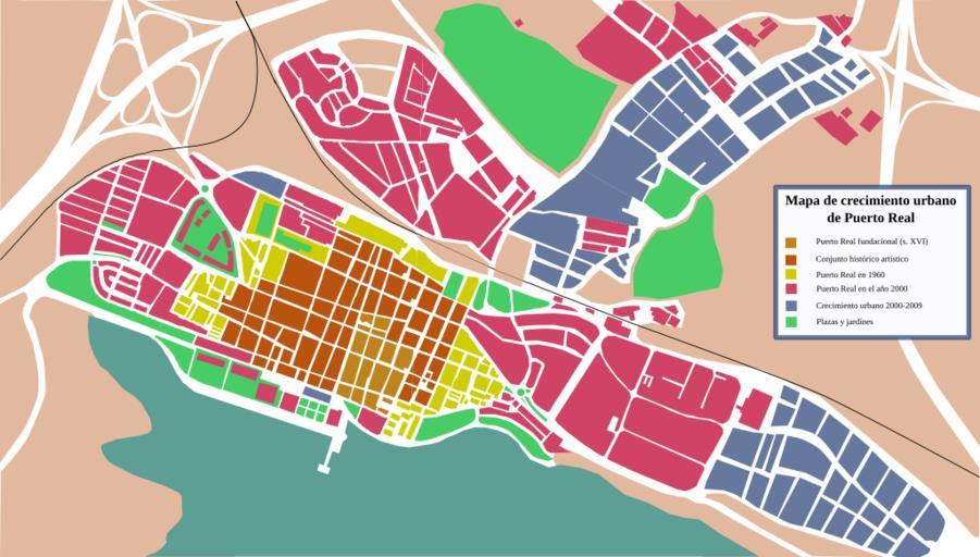 | Keywords: Plano puerto real.svg  es Plano de crecimiento urbano de Puerto Real Elaboración propia a partir de datos del Google Earth año 2002-año 2009 el Instituto Cartográfico de Andalucía el Plan General de Ordenación Urbana de Puerto Real descargable en la página del Ayto de Puerto Real NACLE2 2009-09-20 Puerto Real Andalusia in the 2000s |