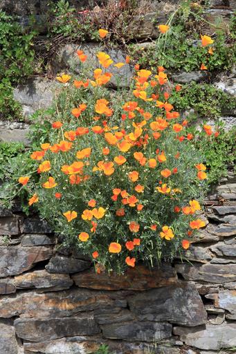 Keywords: plant flowers california poppy eschscholzia california wall orange nature yellow cévennes