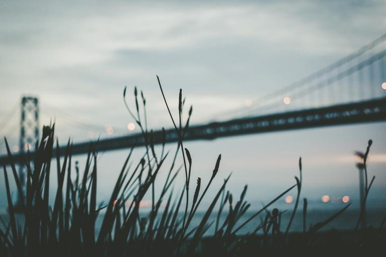 Keywords: plant grass silhouette bridge background blurred macro closeup evening photography famous golden gate san francisco usa travel destination