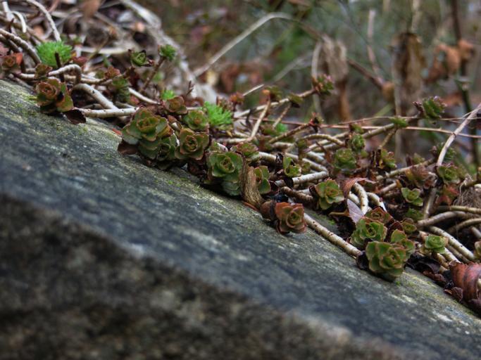 Keywords: plant stone oblique green ground cover red leaves ground autumn perspective