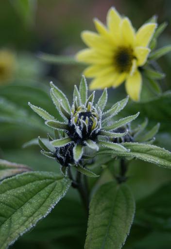 Keywords: plant sunflower flower frost winter autumn yellow bud