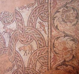Keywords: Plaoshnikmosaic.JPG Mosaic in the early Christian basilica at Plaoshnik Ohrid Art in Ohrid 2006-09-11 own assumed Preslav~commonswiki