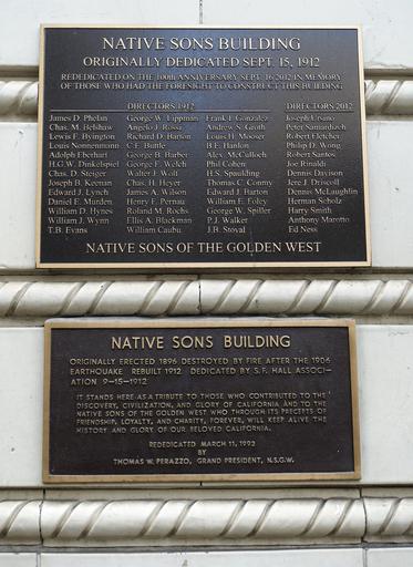 Keywords: Plaque - Native Sons Building - San Francisco, CA - DSC03959.jpg en Native Sons Building - 414 Mason Street San Francisco California USA 2015-05-21 13 34 33 own Daderot other versions PD-text cc-zero Native Sons Building