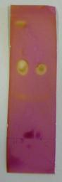 Keywords: Plaque révélée 3.jpg fr Chromatographie d'un extrait de clou de girofle own Esprit Fugace 2011-02-07 Chromatography of a clove extract Cc-zero