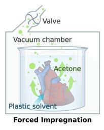 | Keywords: PlastinationProcess EN.svg en The centerpiece of plastination forced impregnation In a vacuum acetone trickles out of the tissue creating a volume deficit in the specimen which allows it to be permeated by the plastic de Der Kern der Plastination die forcierte ImprÀgnierung Hierbei wird das PrÀparat in einer Kunststofflösung unter Vakuum gesetzt Durch den hohen Dampfdruck fÀngt das Aceton an zu sieden und perlt aus dem PrÀparat heraus Dadurch entsteht ein Volumendefizit und das gleiche Volumen an Kunststoff wird ins Gewebe hinein gesaugt Das PrÀparat ist danach vollkommen mit Kunststoff durchtrÀnkt und wird eventuell in die anatomisch richtige Stellung gebracht Englische Version Own DooFi 2009 <gallery>File PlastinationProcess_DE svg German Version</gallery> Anatomical preservation SVG diagrams in English SVG anatomy Gunther von Hagens Vacuum |