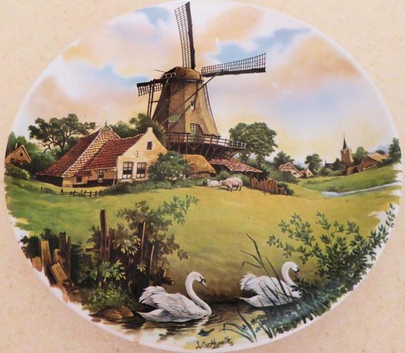 Keywords: plate hand decorated royal schwabap holland windmill artistic