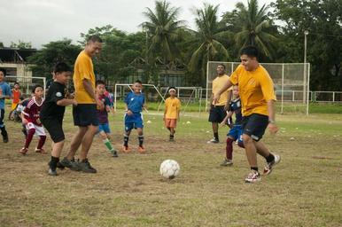 Keywords: Playing soccer with children in the Philippines 120911-N-CB621-247.jpg en Sailors assigned to the submarine tender USS Frank Cable AS 40 play soccer with children at the Tapinac Oval Sports Complex Frank Cable conducts maintenance and support of submarine and surface vessels deployed in the U S 7th Fleet area of responsibility U S Navy photo by Mass Communication Specialist 1st Class Jason C Swink/Released 2012-09-11 Petty Officer 1st Class Jason Swink https //www dvidshub net/image/664170 120911-N-CB621-247 2012-09-14 04 21 OLONGAPO CITY PH PD-USGov-Military-Navy USS Frank Cable AS-40 Images from DoD uploaded by Fæ |