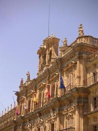 Keywords: Plaza half-mast.JPG The picture shows the a part of the Plaza Mayor in Salamanca Spain shortly after the bombings in London Author Julian Schwanke 2005-07-08 own assumed Fera2k Town hall of Salamanca Flags at half staff