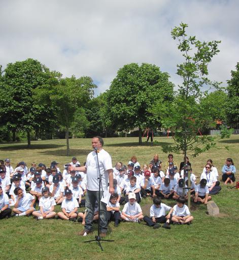 Keywords: Pliant'tie du Tchêne du Chent'naithe La Preunmié Tou Saint Hélyi Jèrri 16 dé Mai 2011 09.jpg La pliant'tie du Tchêne du Chent'naithe à La Preunmié Tou Saint Hélyi Jèrri lé 16 dé Mai 2011 Seigneur of the Fief des Mélèches James Le Gros plants a centenary oak with the help of children from First Tower School 16 May 2011 marks exactly 100 years since the land for the park was gifted to the Parish of Saint Helier by the Seigneur's ancestor own photo 2011-05-16 13 19 59 Man vyi 2011 in Saint Helier Jersey People of Jersey in 2011 Groups of people in Jersey Tchêne du Chent'naithe Gardens in Jersey Parks in Jersey Schools in Jersey Tree planting