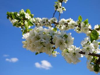 Keywords: plum trees flowers spring flower nature tree white sky blue flowering