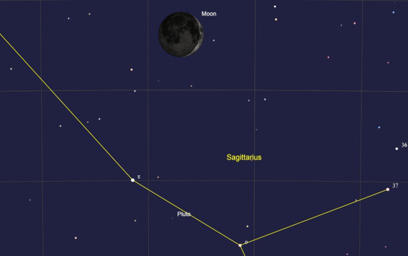 Keywords: The waxing crescent Moon passes north of Pluto at 17:40 UT, 2nd December 2016 news