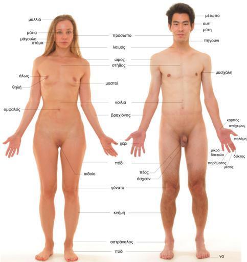 | Keywords: Ανθρώπινη ανατομία.png el Τα βασικά ανατομικά χαρακτηριστικά ενός αρσενικού και θηλυκού ανθρώ ου en Human male and female - anatomical features pointed out - greek language fr Les parties du corps humain chez la femme et l'homme adultes - langue grecque File Anterior view of human female and male without labels jpg Mikael Häggström 2013-01-05 Human body images in different languages Cc-zero Photographs of the human body features Diagrams in Greek Nude men and women with white background |