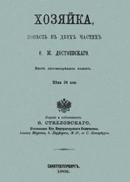 | Keywords: Хозяйка (повесть).png pt-br Frontispício da edição revista pelo autor da obra A Senhoria de Dostoievski ru Хозяйка Повесть в двух частях Сочинение Ф Достоевского Вновь п осмот енное самим авто ом издание Издание и собственность Ф Стелловского СПб Тип Ф Стелловского 1865 106 с 2014-10-11 06 28 27 http //www fedordostoevsky ru/works/lifetime/housewife/1865/ Fyodor Dostoyevsky other versions PD-old-70-1923 Uploaded with UploadWizard Books by Fyodor Dostoyevsky | ||||