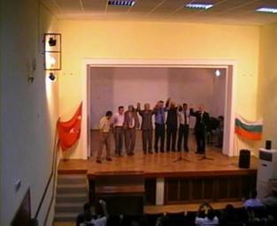 Keywords: Pobratimqvane.jpg en Partnership sign bg Подписване на поб атимяването own Emokehayov People on stage Raised hands