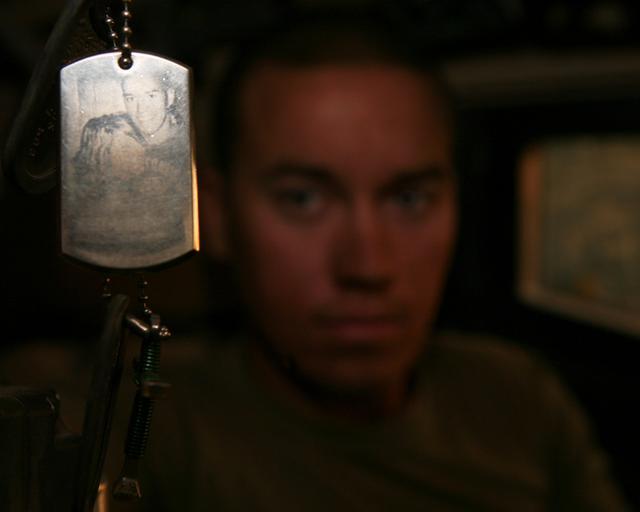 Keywords: Pocket-Sized Pieces of Mind, Deployed Marines Keep Reminders of Home, Luck and Faith Close to Their Hearts DVIDS268675.jpg en When Lance Cpl Zech Stimson a motor transportation operator with Combat Logistics Battalion 6 1st Marine Logistics Group Forward embarks upon an operation outside of his home base of Camp Leatherneck he ensures a photograph-etched dog tag given to him by his wife accompanies him as displayed aboard Forward Operating Base Edinburgh Afghanistan April 3 Like many Marines the 19-year-old Lapeer Mich native carries this piece of home with him for good luck while deployed in support of Operation Enduring Freedom 2010-04-03 Sgt Justin Shemanski https //www dvidshub net/image/268675 268675 2010-04-13 07 28 CAMP LEATHERNECK AF PD-USGov Operation Enduring Freedom Camp Leatherneck Images from DoD uploaded by Fæ
