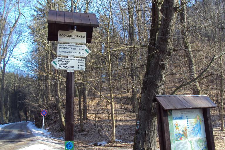Keywords: Pod Lemberkem.jpg cs Turistický rozcestník pod Lemberkem katastr obce Lvová u Jablonného v Podještědí own Zákupák 2011-03-02 Lvová Hiking and footpath fingerposts in Liberec District Altitude signs of KČT marking