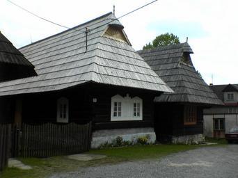 Keywords: Podbiel wooden houses.JPG Typical houses in Bobrova Raľa in Podbiel own 2006-05-18 Robzle free Cultural heritage monuments in Podbiel