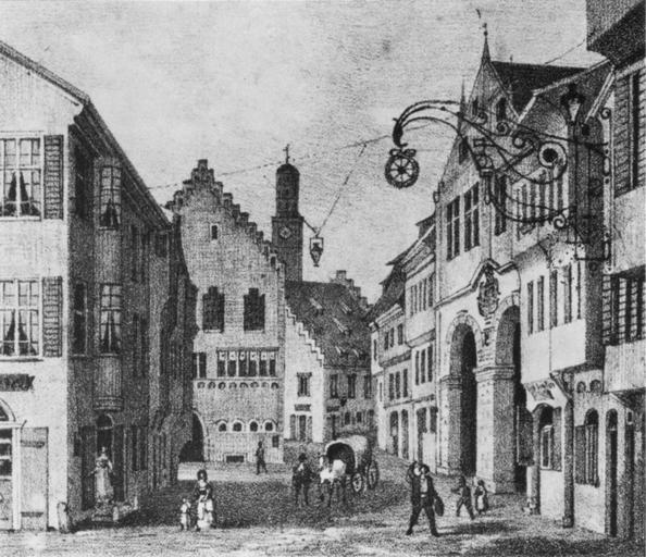 | Keywords: Podesta nach Lang Ravensburg Sammelbild Detail Marktstraße unten.jpg Sammelbild Ravensburg Lithographie um 1860 Detail Untere Marktstraße; Stadtarchiv Ravensburg Schefold 6237 Peter Eitel Hrsg Ravensburg und das Schussental in Ansichten und Schilderungen aus fünf Jahrhunderten Thorbecke Sigmaringen 1977 ISBN 3-7995-2008-2 ~ 1860 August Podesta 1813-1858 nach Franz Xaver Lang 1799-1873 PD-old-100 History of Ravensburg Marktstraße Ravensburg Altes Theater Ravensburg Inn signs in Ravensburg Rathaus Ravensburg |