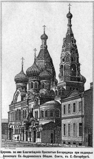 Keywords: Podvorie StaroAfonskogo Skita SPb photo 19-20466.jpg Saint Petersburg Russia Санкт-Пете бу г 5-я Советская улица Подво ье Ста о-Афонского Свято-Анд еевского мужского скита Це ковь Благовещения П есвятой Бого одицы и Часовня Анд ея Saint-Pétersbourg http //www citywalls ru/photo4526-20466 html author 1900 PD-old Russian Orthodox churches in Tsentralny District of Saint Petersburg 5 Sovetskaia Street Saint Petersburg Mount Athos