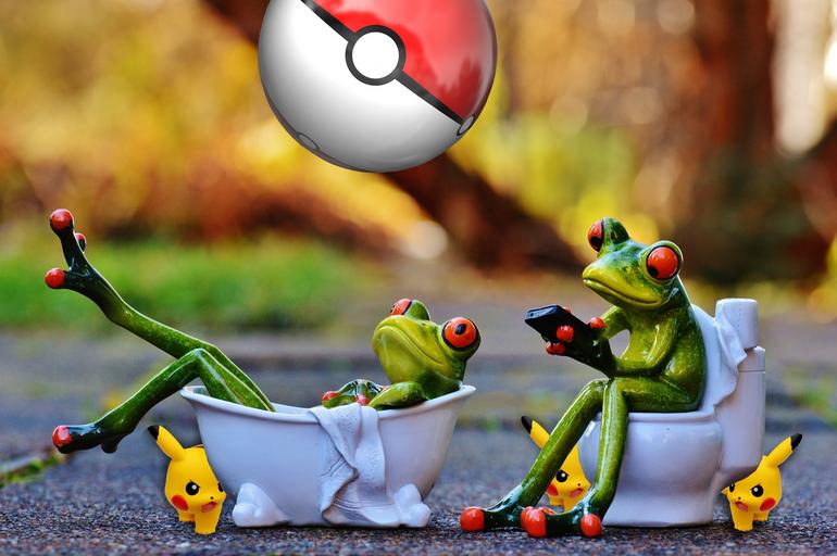 Keywords: pokemon pokemon go play smartphone mobile phone virtual hunting monster players everywhere environment frog funny fun toilet bath frogs cute
