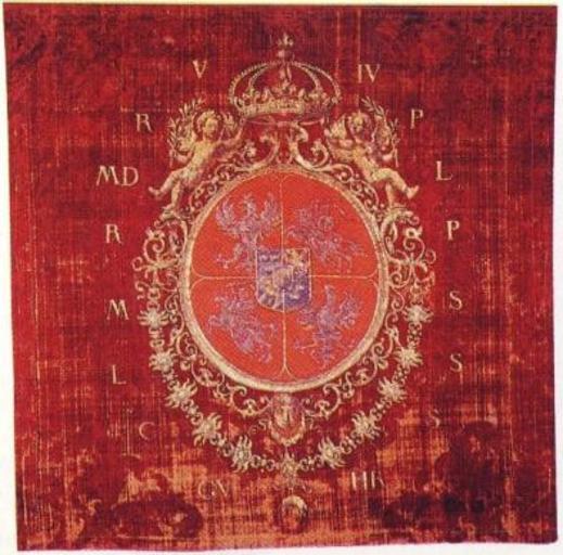 MAKE A MEME View Large Image Poland Fabric with emblem of Ladislaus IV.jpg Poland < 1648 silver gold velvet Institution Wawel Royal Castle accession number object history credit line Decoration Coat of arms of the Polish-Lithuanian Commonwealth with the Vasa crest ...